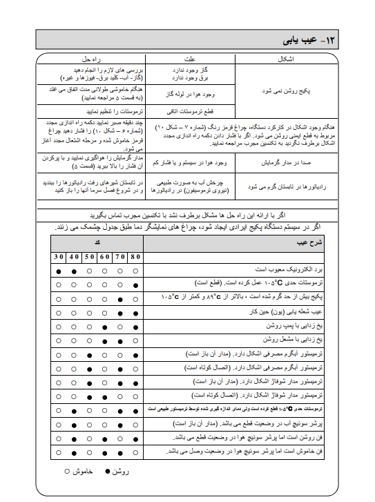 عیب یابی پکیج ایران رادیاتور مدل های ECO24FF/ECO22FF